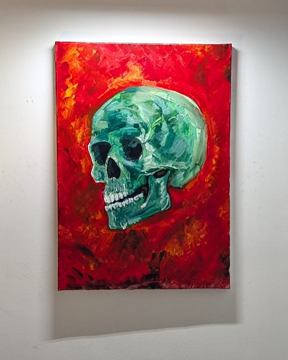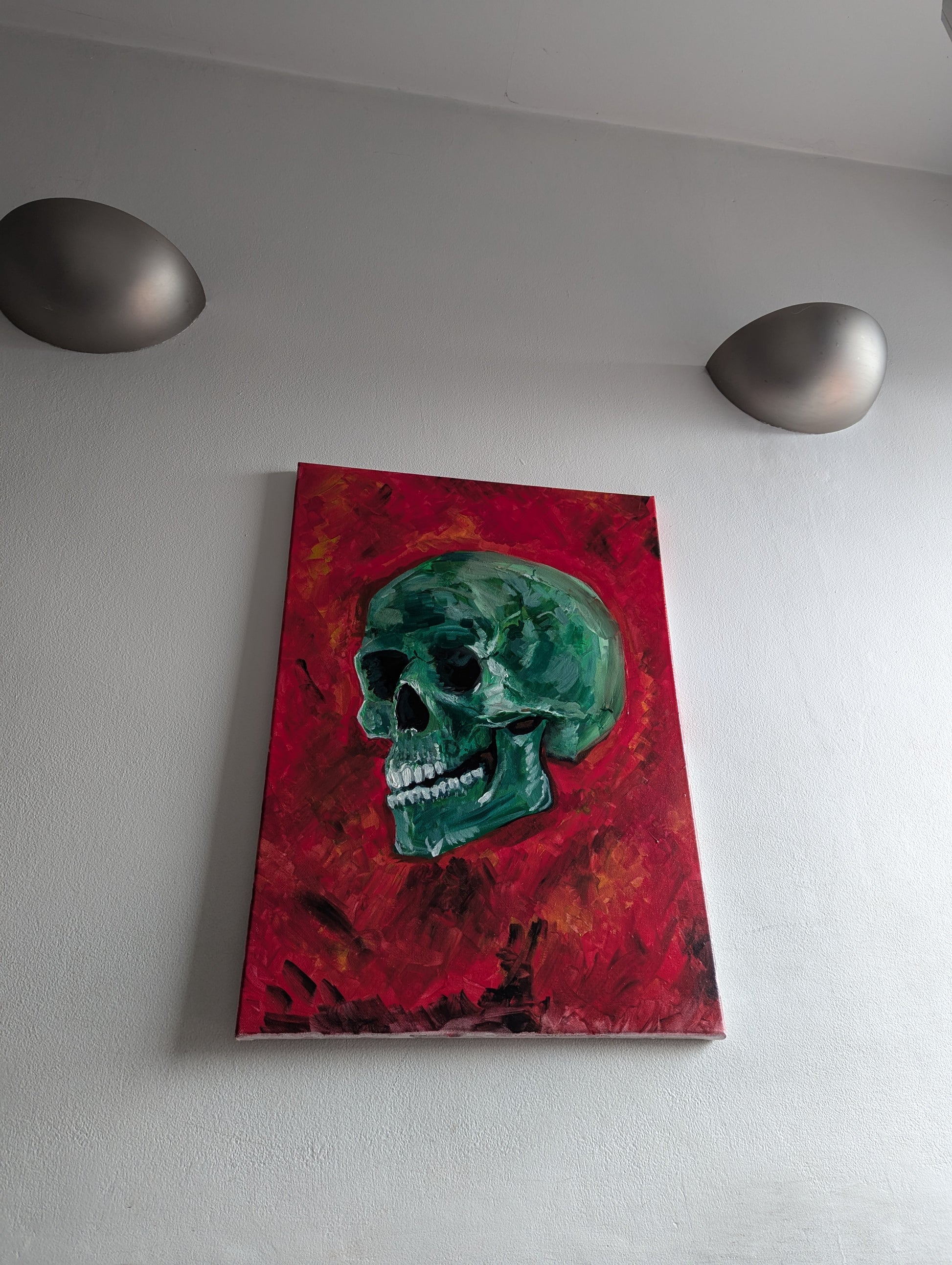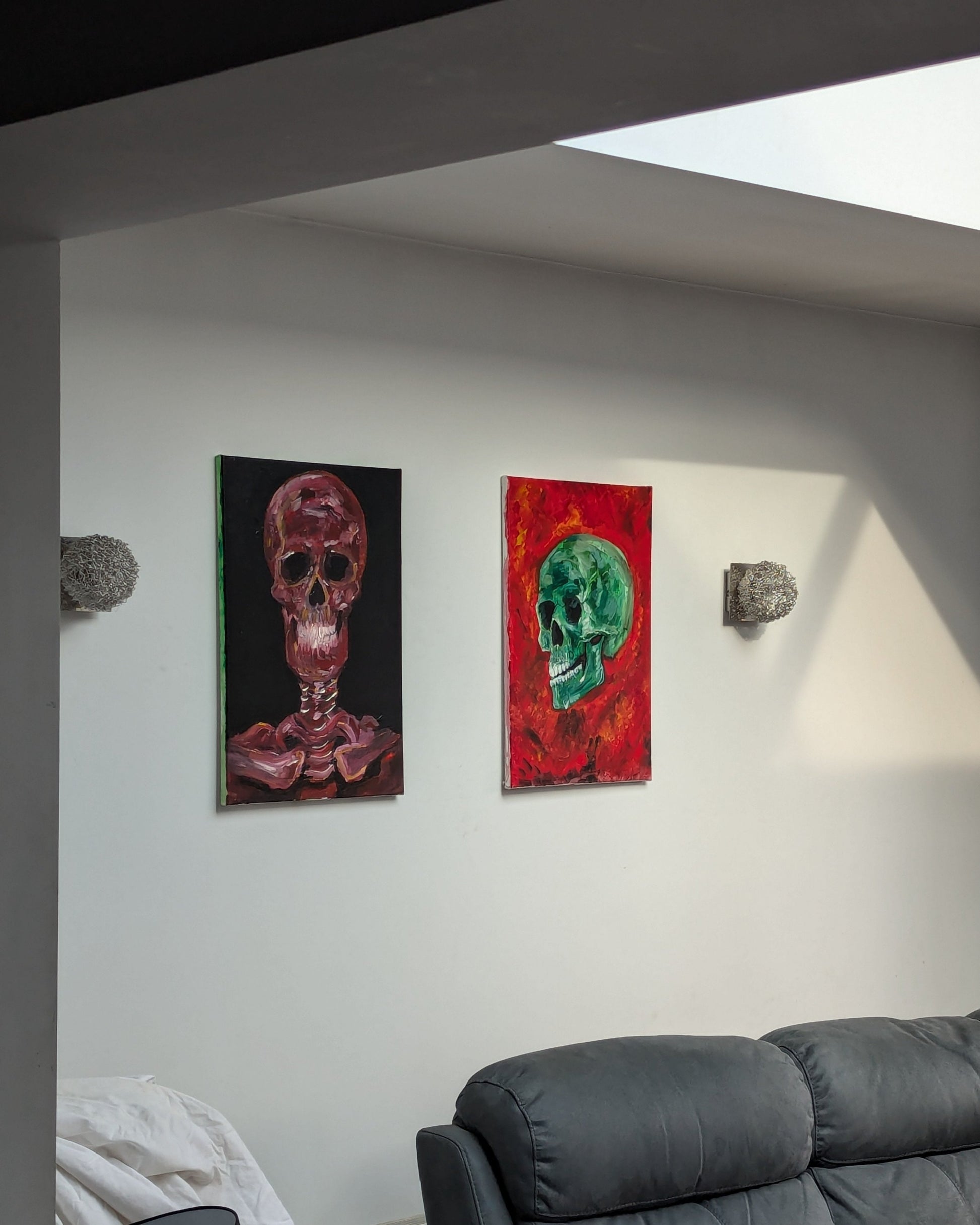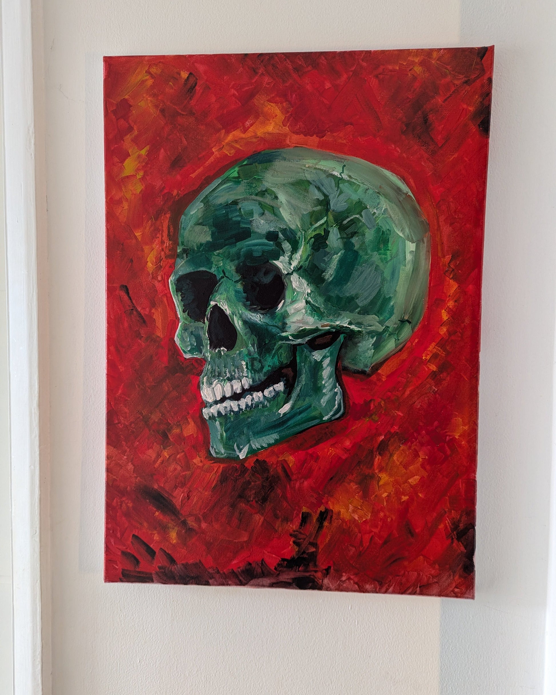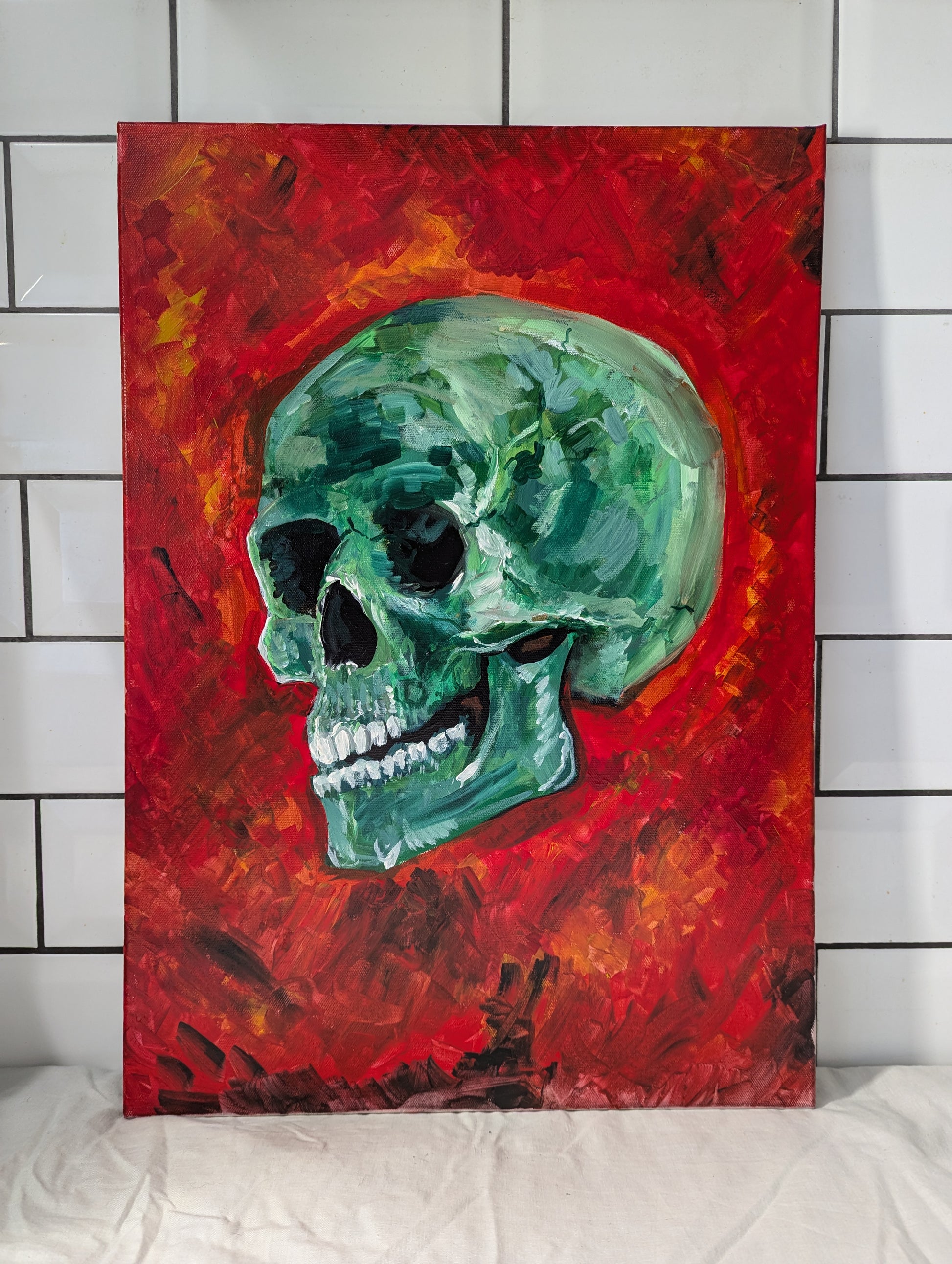 This is piece is part of my Skeleton collection, inspired by one of my favourite paintings, Skull of a Skeleton with burning cigarette by Van Gogh.
